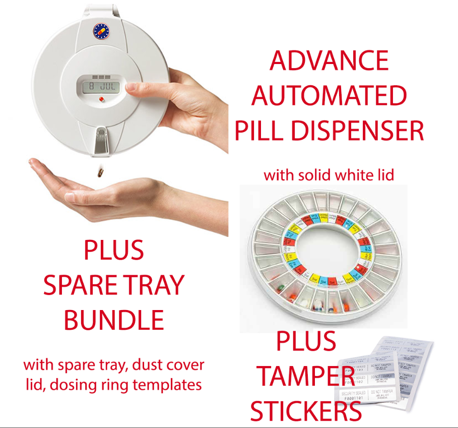 Automatic Pill Dispenser ADVANCE Pharmacy Bundle with Spare tray + Stickers