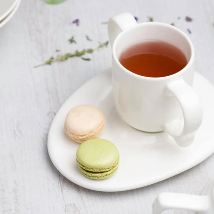 The egg-shaped design of this saucer with raised sides promotes additional safety from spills when being moved or carried. The uniquely designed groove in the saucer allows for the Dignity by Wade drinking mugs/cups to sit securely on the saucer to prevent spills and promote independent drinking. There is plenty of room for a tasty treat on the side. Chip resistant and dishwasher safe. Saucer size: 19cm x 17.1cm x 1.9cm (7½" x 5¼" x 2¾"). Product weighs 490g.