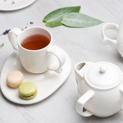 Just because you need a little help doesn't mean you should have to put up with plastic and institutional looking diningware. This high quality ceramic range supports people who may be experiencing difficulties with eating and drinking to participate in these tasks in a dignified way.